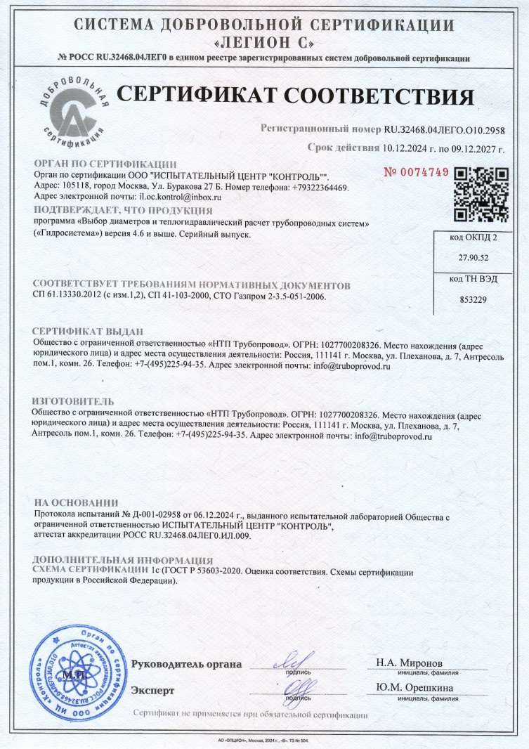 Программа для теплогидравлического расчёта трубопроводных систем и выбора диаметров.
