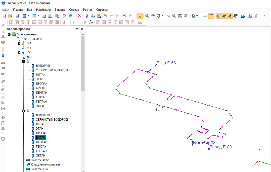 - Добавлена возможность расчета однофазного течения в трубопроводах с различными продуктами в разных источниках с учетом их смешения по ходу течения (при использовании библиотеки «СТАРС»). Добавлены функции показа состава продукта в ветвях.