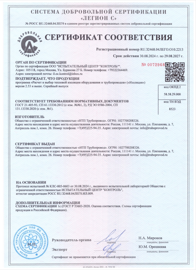 Программа, разработанная в НТП Трубопровод, позволяет Вам рассчитать и выбрать тепловую изоляцию, сэкономив до 90% времени, которое Вы обычно тратите на эту задачу. Программа в автоматическом режиме полностью формирует теплоизоляционную конструкцию, рассчитывает и генерирует лист общих данных (ведомость ссылочных и прилагаемых документов), техномонтажную ведомость, ведомость объемов работ (для сметного отдела) и спецификацию по ГОСТ 21.405-93, ГОСТ 21.110-2013 и ГОСТ Р 21.1101-2013.