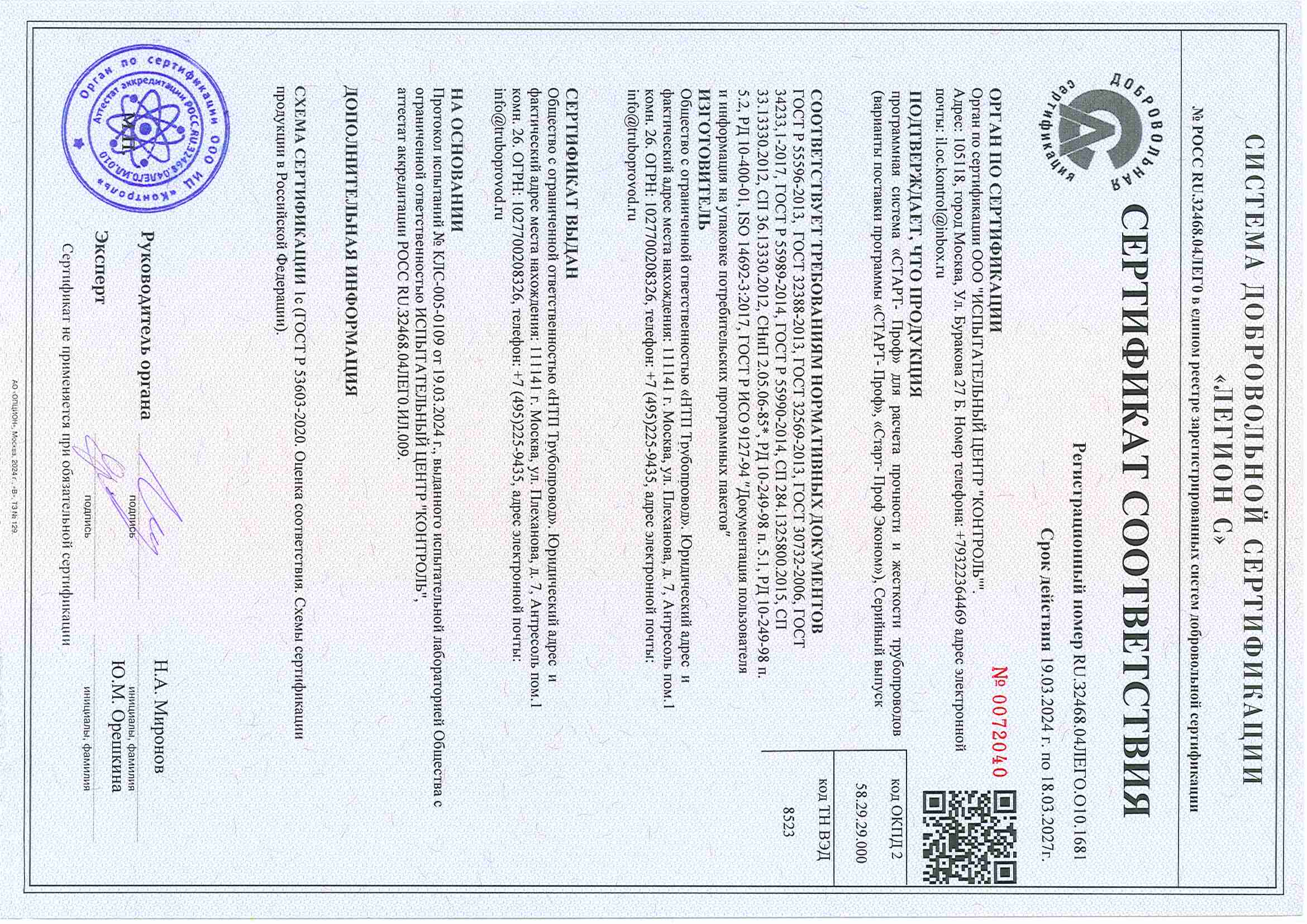Выполнение расчетов по программам Старт-Проф обеспечивает надежность и безопасность при эксплуатации трубопроводных систем различного назначения, облегчает согласование проекта с контролирующими органами (Ростехнадзор, Главсгосэкспертиза), сокращает затраты и время пусконаладочных работ.