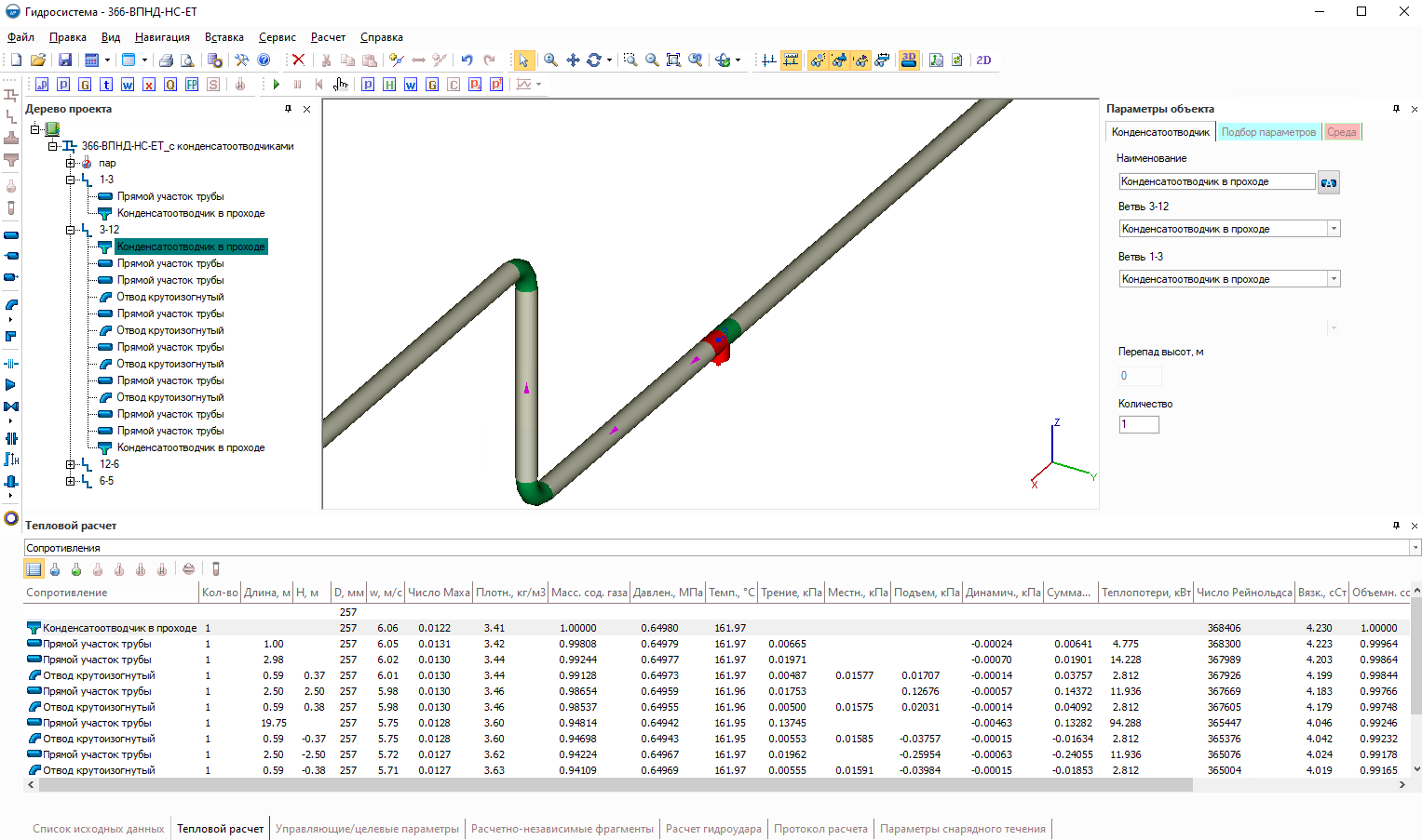 - Добавлена возможность моделирования отведения конденсата в двухфазных газожидкостных потоках с помощью элемента «Конденсатоотводчик».