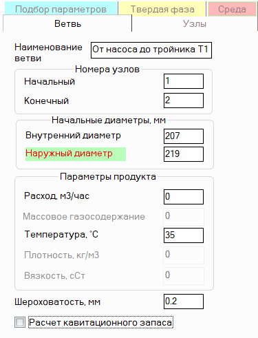 - Добавлен показ в окне расчётных параметров изменения значения вязкости продукта по участкам, а также давления насыщенных паров, используемого при расчёте кавитационного запаса.