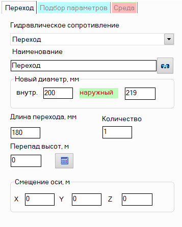 - Перепад высот теперь может учитываться как отдельным элементом, так и в составе прямого участка или местного сопротивления.