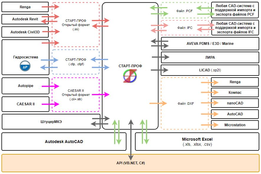 - Экспорт исходных данных и результатов расчета в файл открытого формата для стыковки программы СТАРТ с любыми системами автоматизированного проектирования трубопроводов. Открытый формат – это текстовый файл определенной структуры. Подробнее в руководстве пользователя